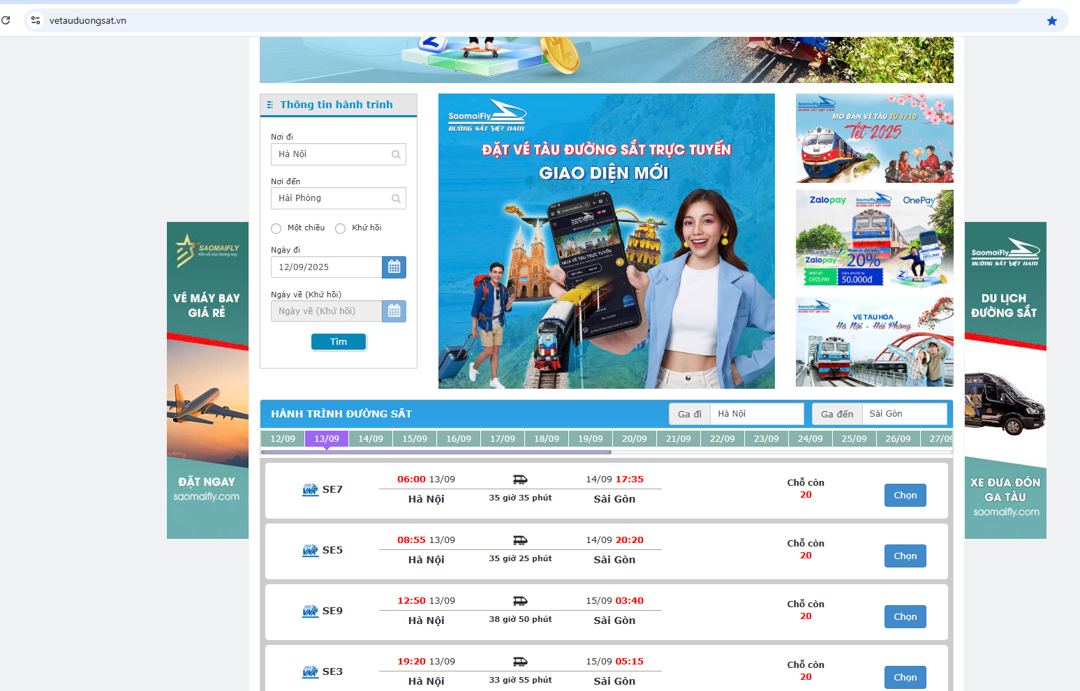 Hệ thống bán vé trực tuyến của Đường sắt Việt Nam