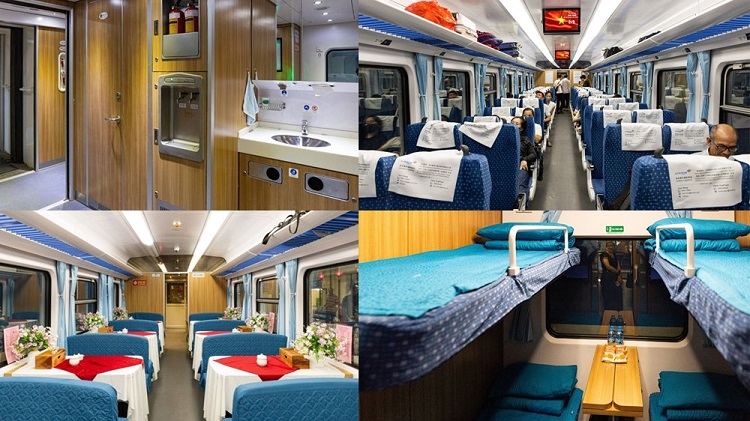 Có cả giường nằm điều hoà (4 hoặc 6 giường/toa) và ghế ngồi nhiều hạng để lựa chọn.
